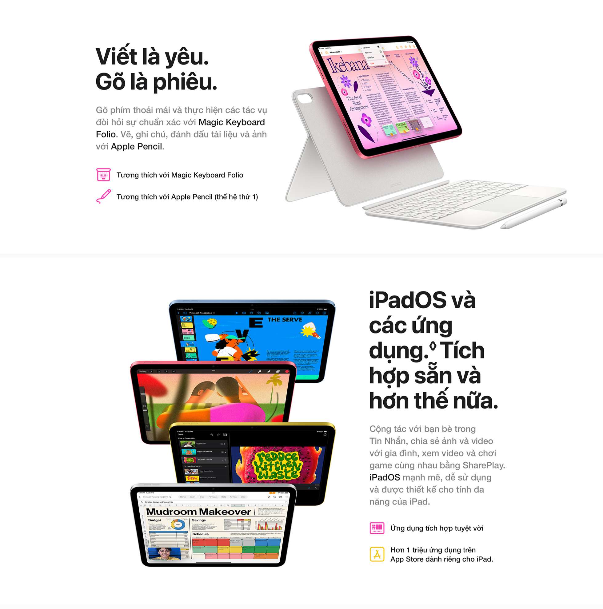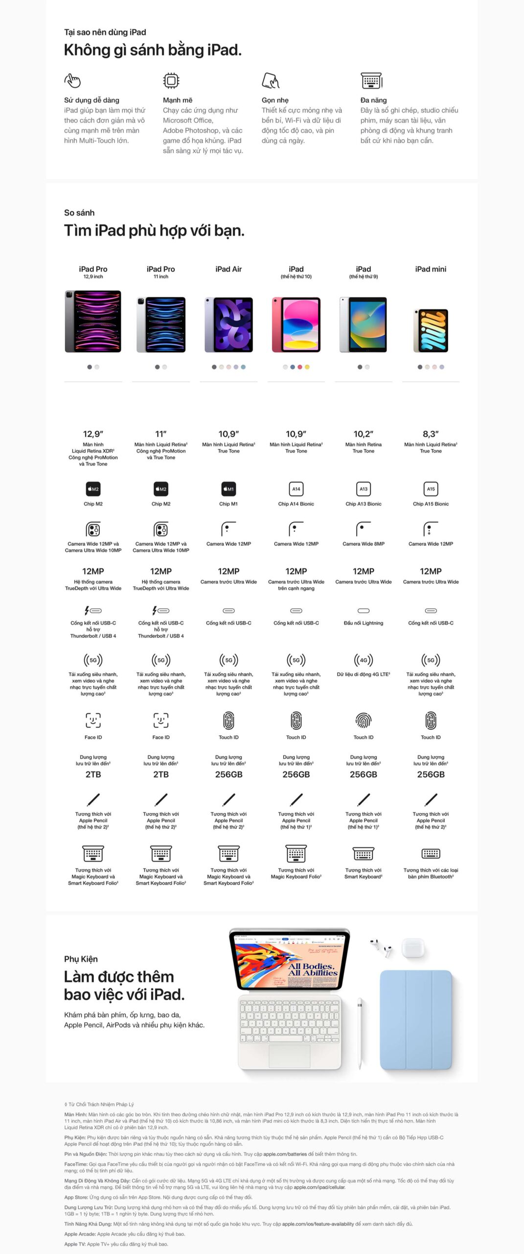 Phụ kiện được bán riêng và tùy thuộc nguồn hàng có sẵn. Khả năng tương thích tùy thuộc thế hệ sản phẩm. Ứng dụng có sẵn trên App Store. Nội dung được cung cấp có thể thay đổi. Phần mềm bên thứ ba được bán riêng.