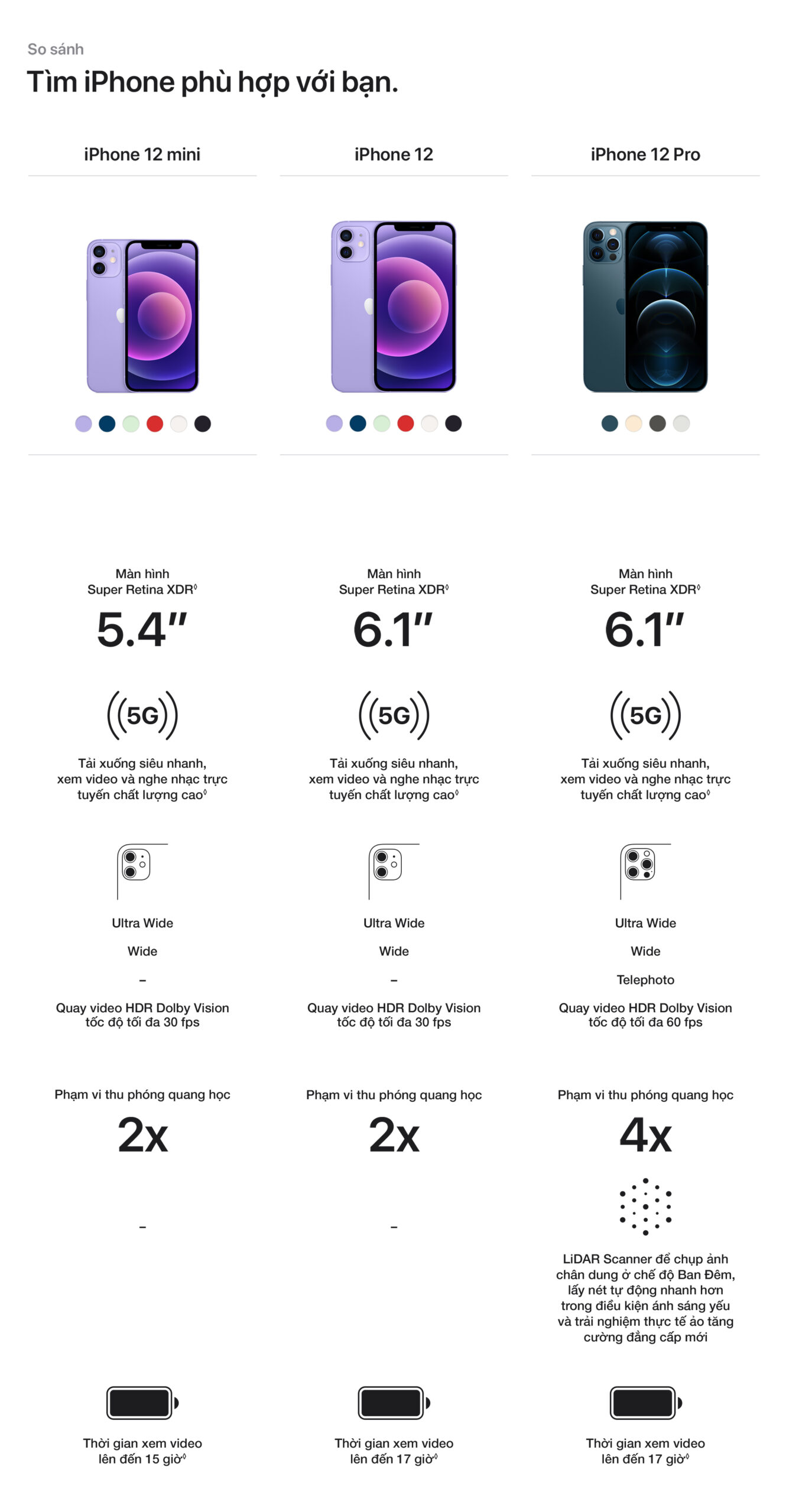 1Cần có gói cước dữ liệu. Mạng 5G chỉ khả dụng ở một số thị trường và được cung cấp qua một số nhà mạng. Tốc độ có thể thay đổi tùy địa điểm và nhà mạng. Để biết thông tin về hỗ trợ mạng 5G, vui lòng liên hệ nhà mạng và truy cập apple.com/iphone/cellular.